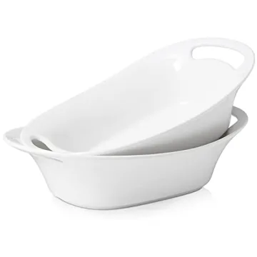Show moreIntroducing the DOWAN Large Serving Bowl Set, a perfect blend of style and functionality designed to elevate your dining experiences. This exquisite set features two large oval bowls, each with a generous 2 quart capacity, making them ideal for serving a diverse range of dishes such as soups, salads, pasta, and side dishes. The unique built-in handles ensure easy transport from kitchen to table, so you can serve your culinary creations with confidence and ease. With a thoughtfully crafted U-shaped rim, these bowls help keep your food securely contained, minimizing spills and messes at the dining table.