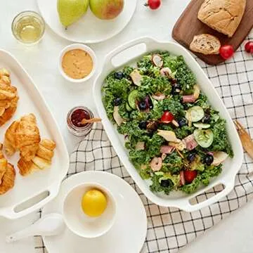 DOWAN Serving Tray with Handles, 15.4" Large Platters for Wedding Decor, Porcelain Serving Dish for Entertaining, White Plates for Salad Meat Fruit Dessert, Set of 2