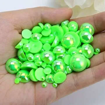 Dowarm 1000 Pieces Flatback Pearls, 4MM 6MM 8MM 10MM 12MM 14MM Neon Green AB Half Pearls for Crafts, Tumblers, Shoes, Mix Sizes
