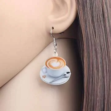 DOWAY Acrylic Charm Coffee Cup Spoon Earrings Drop Dangle Jewelry Fashion Decoration for Women Funny Party Gifts (White)