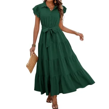 Introducing the stunning dowerme Women’s Spring Dress, a captivating addition to your wardrobe that blends elegance, comfort, and modern chic. This Cap Sleeve V Neck Button Elastic High Waist Belted Tiered Boho Flowy Swing Beach Dress is not just an ordinary dress; it is a celebration of femininity and style designed for every occasion. Crafted from a luxurious fabric mix of viscose, polyester, and polyamide, it offers a gentle touch on the skin while ensuring...
