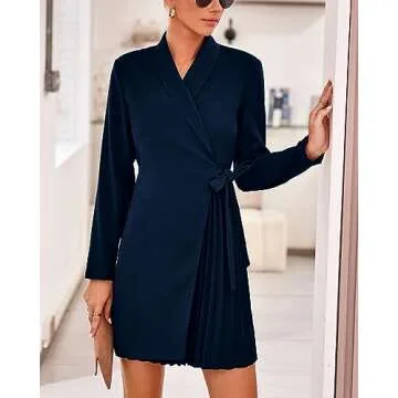 Show moreIntroducing the dowerme Women's Casual Long Sleeve Lapel V Neck Mini Wrap Dress, a versatile and stylish addition to your wardrobe that seamlessly transitions from the office to nighttime outings. Crafted with a combination of high-quality polyester and elastane, this blazer dress boasts a thick and soft material that ensures comfort and warmth during the colder seasons. Its unique A-line silhouette, complete with a non-detachable belt, beautifully accentuates your hourglass figure while providing a flattering fit that works wonders for a variety of body shapes. The lapel v-neck design enhances your look by drawing attention to your collarbones, making this piece a chic choice for any occasion.