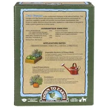 Transform your gardening experience with Down To Earth Bat Guano Mix, a premium fertilizer featuring a balanced 7-3-1 formula that supports vibrant plant growth and bountiful harvests. This organic product is certified by the Organic Materials Review Institute (OMRI), ensuring that your plants receive only the best in organic nutrition. Packed with readily soluble nitrogen, phosphorus, and micronutrients, this mix is a game changer for both novice and experienced...