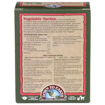 Show moreIntroducing the extraordinary Down to Earth Organic Vegetable Garden Fertilizer, your essential companion for nurturing vibrant and healthy vegetables! This 1-pound package features a well-balanced 4-4-4 nutrient formula, specifically designed to cater to a variety of vegetable crops year-round. Imagine the joy of cultivating juicy tomatoes in summer or aromatic herbs in your cozy garden—all thanks to this top-quality, all-natural fertilizer. Infused with a harmonious blend of necessary nutrients, it stands out as a must-have for every gardener aiming for a bountiful harvest.