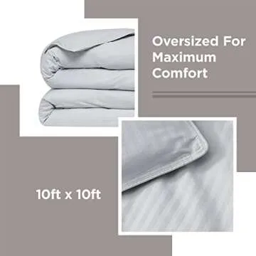 Show more Introducing the DOWNLITE World's Biggest Comforter, the ultimate sanctuary for those who cherish plush comfort and spacious sleeping arrangements. Measuring an impressive 120 x 120 inches (10 ft x 10 ft), this colossal comforter is not just a statement piece; it is designed for those who refuse to compromise on their sleep experience. Tailored from a sumptuous 300 thread count cotton damask, its hypoallergenic polyester fill mimics the luxurious feel of down while ensuring it is safe for sensitive sleepers. Experience ultimate coziness as you wrap yourself in the softness of this all-season bedding essential.