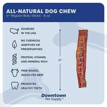Downtown Pet Supply 6-inch Bully Sticks for Dogs, 0.5 LB - USA Sourced, No Hide Dog Chews Long Lasting and Non-Splintering - Nutrient-Rich, Single Ingredient and Odor Free Bully Sticks for Dogs