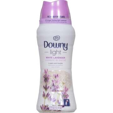 Show moreTransform your laundry experience with Downy Light Laundry Scent Booster Beads in the soothing White Lavender scent. This innovative product is designed to enhance your laundry's freshness without the use of heavy perfumes, dyes, or phosphates. Imagine stepping out of the laundry room with clothes that smell just as delightful as the soft, calming scent of freshly picked lavender flowers blended perfectly with velvety vanilla undertones. These scent booster beads effortlessly elevate your wash, infusing your fabrics with a light, refreshing fragrance that is both comforting and long-lasting.