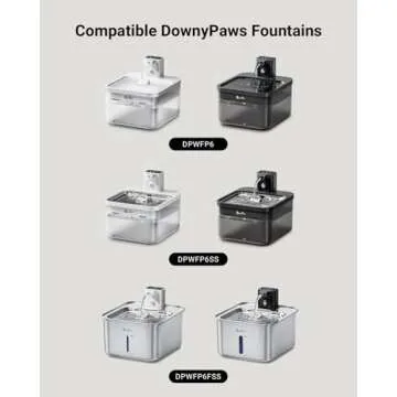 Show more If you're a dedicated pet owner, then the Compatible Cat Fountain Filters are an essential addition to your furry friend's hydration routine. This innovative product is specially designed for use with the DownyPaws Cat Water Fountain DPWFP6, ensuring your cats enjoy fresh, clean water every time they drink. Each package comes with 6 replacement filters and 6 pre-filter sponges, providing ample supply for months to come.