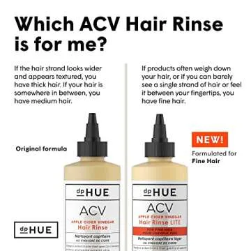 Show more Transform your hair care routine with the dpHUE Apple Cider Vinegar Hair Rinse Lite – a revolutionary shampoo alternative designed specifically for those with fine, delicate hair. This 8.5 oz powerhouse is not just a rinse; it’s a versatile solution that cleanses while nurturing your tresses. Developed with a low-chemical formula and subtle scent, it’s perfect for individuals seeking a gentle yet effective hair cleanse that won’t overwhelm their senses. Users rave about how this rinse leaves their hair soft, shiny, and voluminous, allowing you to embrace your natural beauty without the weight of traditional shampoos!