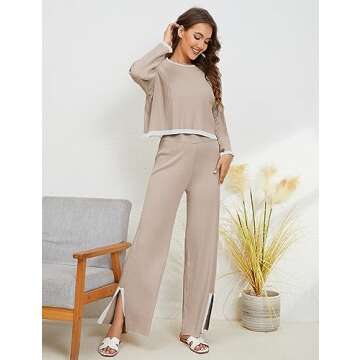 Show moreStep into comfort and style with the Dqbeng Two Piece Outfits for Women Sweater Set, the ultimate loungewear set designed for the modern woman. Perfect for everyday life, this fashionable ensemble combines a chic pullover top with high-waisted flared pants for an effortlessly stylish look. Crafted from premium stretchy fabric, both pieces are soft against the skin and provide the freedom of movement you need. Whether you're lounging at home, running errands, or enjoying a casual outing, this set keeps you cozy and fashionable from day to night.