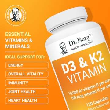 Dr. Berg Vitamin D3 K2 w/MCT Powder - Includes 10,000 IU of Vitamin D3, 100 mcg MK7 Vitamin K2, Purified Bile Salts, Zinc & Magnesium for Ultimate Absorption - K2 D3 Vitamin Supplement - 120 Capsule