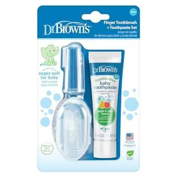 Dr. Brown's 100% Silicone Baby Finger Toothbrush and Toothpaste Set, 2-Pack Toothbrush with Storage Case, Fluoride-Free Apple Pear Toddler Toothpaste