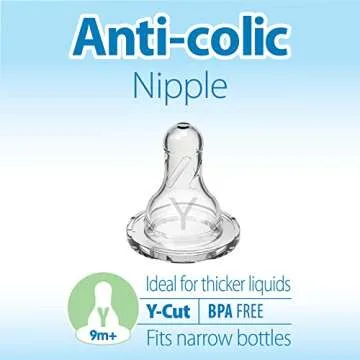 Show more Introducing the ultimate solution for feeding your little one with ease—Dr. Brown’s Y-Cut Nipple. Designed specifically for thickened liquids, this innovative nipple is the perfect companion when your baby is ready for transition from liquid to solids. It's not just about feeding; it's about nurturing a comfortable and enjoyable experience for both you and your baby.