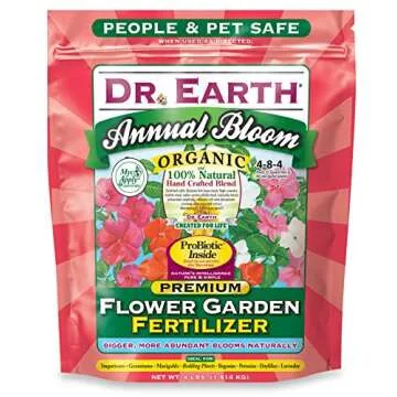 Show moreTransform Your Garden with Dr. Earth 705P Organic Flower Garden Fertilizer – the ultimate solution designed specifically for flower enthusiasts who cherish vibrant and healthy blooms. This 4-pound poly bag of premium fertilizer is lovingly crafted from 100% organic and natural ingredients, ensuring you nourish your garden without the use of harsh chemicals. Enriched with essential nutrients and beneficial microbes, this fertilizer promotes accelerated growth, vibrant colors, and robust flowering, ultimately making your flower garden flourish beautifully.
