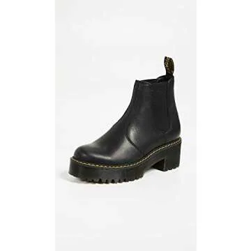 Show moreStep into timeless style and ultimate comfort with the Dr. Martens Women's Rometty Chelsea Boot. Crafted from luxurious Burnished Wyoming leather, renowned for its subtle grain and oily surface, these boots are designed to turn heads while providing exceptional durability. The rich black burnished finish enhances the classic silhouette, highlighting the fashionable yet practical aspects of your footwear collection. With features that include grooved sides, visible stitching, and a scripted heel-loop, you can trust that these boots retain the iconic Doc's DNA while offering a modern twist.