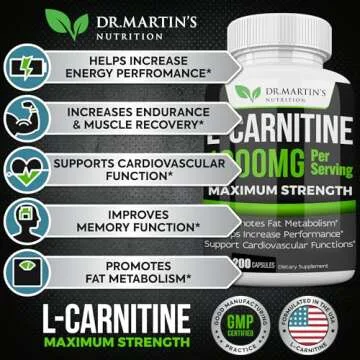 Show more Looking for a way to boost your energy levels and improve your cognitive function? Dr. Martin's Nutrition L-Carnitine is your ideal solution! This incredible supplement plays a crucial role in energy production by transporting fatty acids directly into your cells’ mitochondria, which act as engines within your cells, effectively burning these fats to create usable energy. Each capsule contains 500mg of power-packed L-Carnitine, making it an essential addition to your daily routine.