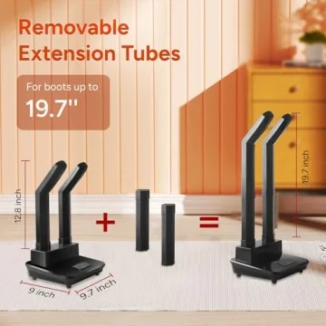 Show more Meet the Dr. Prepare Boot Dryer - the ultimate solution for efficiently drying all your winter gear. This multifunctional device is not just a boot dryer; it serves as a shoe dryer, glove dryer, and even a boot warmer, designed with convenience and effectiveness in mind. Featuring adjustable extension tubes that extend up to 19.7 inches, it provides the perfect height for tall rubber farm and hunting boots. The curved ends are equipped with multiple air vents, ensuring a rapid and even distribution of warm air to every corner of your footwear, effectively eliminating moisture from the inside out, no matter how tough the conditions are.