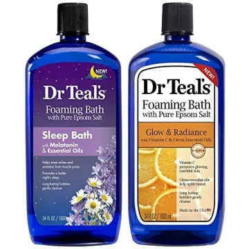Show moreTransform your bathing experience with the luxurious Dr Teal's Foaming Bath Set. This exquisite collection features two 34 fl oz bottles, one infused with Melatonin and the soothing essences of Lavender and Chamomile, while the other rejuvenates with Vitamin C and invigorating Citrus Essential Oils. Perfect for anyone looking to unwind after a long day, these foaming baths not only cleanse but also promote relaxation and help you achieve a peaceful night’s sleep. Envelop yourself in calmness while relishing the delightful scents that linger in the air, turning your bathroom into a private sanctuary.