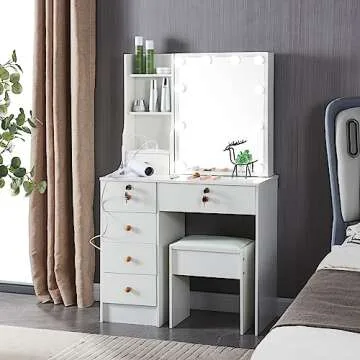 Dradaomull Makeup Vanity Table - Stylish Storage & Lighted Mirror
