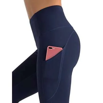 Dragon Fit High Waist Yoga Leggings with 3 Pockets(2 Side and 1 Inner),Tummy Control Workout Running 4 Way Stretch Yoga Pants (Medium, Navy)