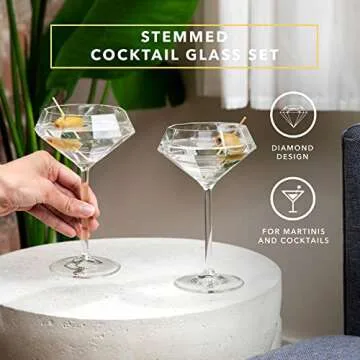 Dragon Glassware Martini Glasses, Clear Diamond Shaped Cocktail Barware, Large Cosmopolitan and Cocktail Barware, Unique and Fun Gift for Espresso Martini Lovers, 8 oz Capacity, Set of 2