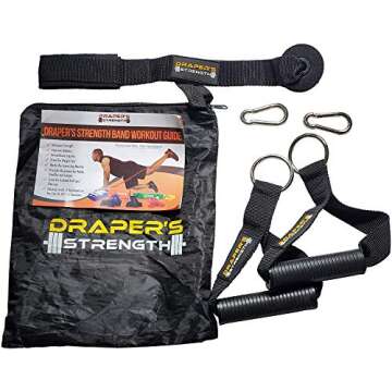 Show more Unlock your fitness potential with the Draper's Strength Heavy Duty Pull Up Assist and Powerlifting Stretch Bands Accessories. This premium accessory pack is meticulously designed to enhance your resistance training experience, making it easier and more effective to achieve your fitness goals. Featuring sturdy band handles, a robust door anchor, and versatile clips, this set is tailored for both beginners and seasoned athletes. Whether you're focusing on pull-ups, powerlifting, or full-body workouts, these accessories provide unmatched support and versatility.