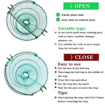 Drasry Foldable Fishing Trap for Bait Shrimp Crawfish Minnow Net Portable Accessories 11.8 x 11.8 x 15.7 (30cm x 40cm) 1/4 in Mesh Collapsible Fish Trap (1PCS)