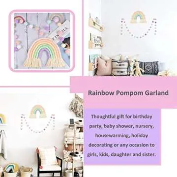 DrCor Pastel Rainbow Wall Decor with Pom Pom Garland Yarn Wall Hanging for Christmas Classroom Birthday Girls Bedroom Party Toddler Nursery Playroom Kids Room Decor, 2 Pack