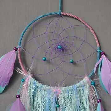 Show more Introducing the enchanting Dreamcatcher, a beautiful addition to any child’s bedroom that not only serves as a stunning decor piece but carries with it a rich history and significance. This handcrafted dreamcatcher is designed to filter out bad dreams while allowing good dreams to pass through, making it the perfect companion for a peaceful night's sleep. Its vibrant colors are perfectly suited for any theme, whether it's a whimsical fairytale room or a cozy nursery.