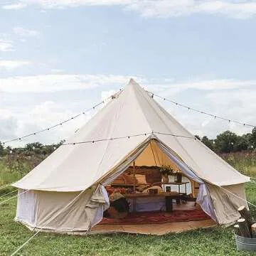 Dream House Outdoor Waterproof Cotton Canvas Family Camping Bell Tent (Beige Cotton Canvas Tent, Diameter 4 meter)