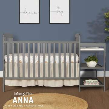 Show moreIntroducing the Dream On Me Anna 3-in-1 Full-Size Crib and Changing Table Combo, a beautifully designed nursery essential that combines style, safety, and versatility. Crafted with the utmost care, this crib effortlessly transforms as your child grows, easily converting from a crib into a daybed (conversion kit sold separately). The attached changing table features a custom-fit 1-inch changing pad and two generously sized storage shelves beneath, providing ample space for all your baby essentials.