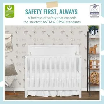 Dream On Me Bellport 4 in 1 Convertible Mini/Portable Crib In White, Non-Toxic Finish, Made of Sustainable New Zealand Pinewood, With 3 Mattress Height Settings