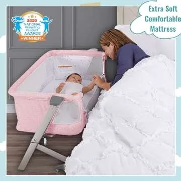 Dream On Me Skylar Bassinet and Beside Sleeper in Pink, Lightweight and Portable Baby Bassinet, Five Position Adjustable Height, Easy to Fold and Carry Travel Bassinet, JPMA Certified