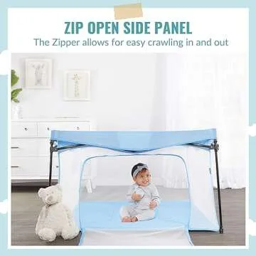 Dream On Me Ziggy Square Baby Playpen in Blue, Easy Set Up and Lightweight, Breathable Mesh Walls, Playpen for Babies and Toddlers