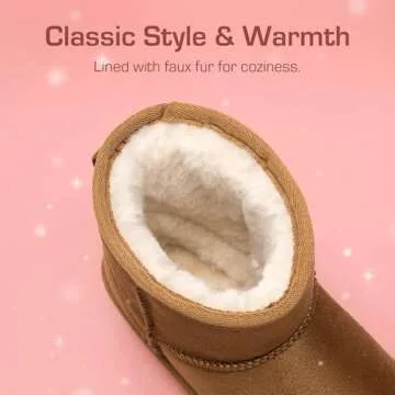 DREAM PAIRS Girls Boys Boots Kids Winter Ankle Faux Fur Lined Snow Shoes FuzzyClassic Kid's Low Boot for Toddler/Little Kid/Big Kid,Size 8 Toddler,Camel,KSB214-1
