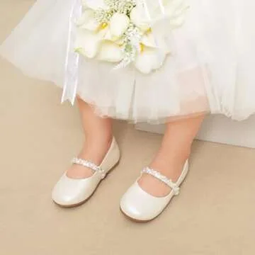 Show moreIntroducing the DREAM PAIRS Girls Dress Shoes - the perfect blend of style, comfort, and practicality for your little princess! These stylish Mary Jane casual slip-on ballerina flats in Ivory are designed specifically for the fashion-forward toddler, ensuring that every step is both chic and comfortable. The elegant design features a delicate strap adorned with shimmering pearls and rhinestones, adding a touch of glamour to any outfit.