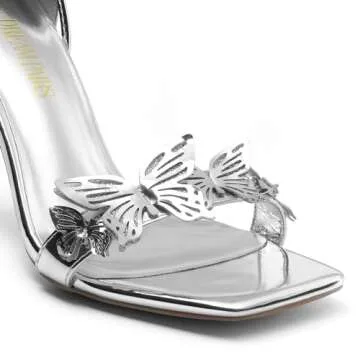 DREAM PAIRS Lace Up High Heels Stilletos Heels for Women Strappy Gladiator Open Square Toe Heels Fashion Dressy Heels Wedding Bridal Pumps Sandals Shoes,Size 6.5,SILVER-PAT,SDHS2403W