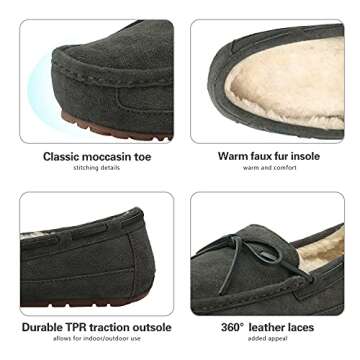 DREAM PAIRS Men's House Slippers Moccasin Indoor Outdoor Fuzzy Furry Loafers Suede Leather Warm Comfortable Shoes