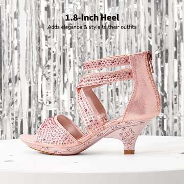 Introducing an enchanting pair of elegant party sandals that will make your little princess feel like royalty! These stunning sandals feature a raised 1.8-inch heel, designed not only for height but also for comfort and stability, enabling her to strut in style and confidence.
