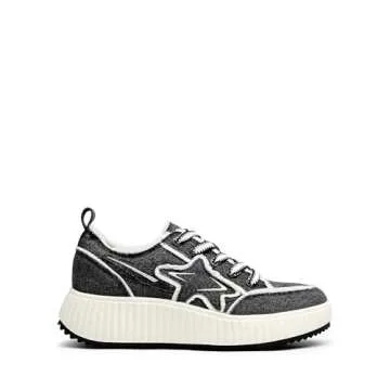DREAM PAIRS Women Platform Chunky Lightweight Comfortable Casual Denim Fabric Lace-Up Kay Walking Fashion Sneakers,Size 6.5,Black/White,SDFN2427W