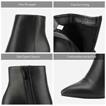 The shaft height of these boots measures 5 inches with a circumference of 10.5 inches, providing a flattering fit that elongates your legs beautifully. Additionally, the boots come lined with soft faux fur, delivering warmth and comfort, perfect for those chilly days or nights out on the town.