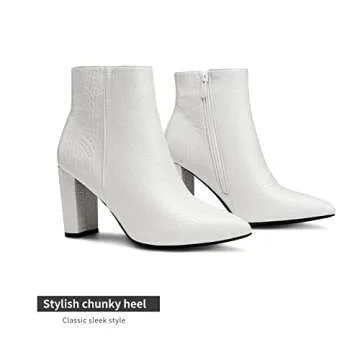 DREAM PAIRS Women's Chunky Heel Ankle Booties Pointed Toe Short Boots,Size 8.5,White/Stone/Pu,SIANNA-1