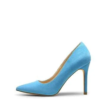 DREAM PAIRS Women's Closed Toe High Heels Dress Pointed Toe Wedding Pump Shoes,Size 8.5,Blue/Suede,Christian-New