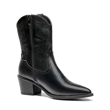 Show moreIntroducing the DREAM PAIRS Women's Cowboy Boots - the perfect blend of style, comfort, and durability. Crafted from high-quality PU leather, these boots feature a delicately designed upper that delivers both elegance and resilience. The innovative multi-spandex lining ensures optimal breathability, making each wear a comfortable experience. With a striking wedge-shaped, wood grain style heel, these boots are not just footwear; they are a fashion statement. Ideal for those who want to express their unique style while enjoying the confidence of a practical shoe.