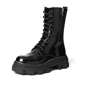 Show moreStep into an urban adventure with the DREAM PAIRS Women's DMB215 Combat Boots, the perfect blend of style and comfort for today's daring fashionista. Crafted for those who desire bold fashion choices without sacrificing comfort, these mid-calf boots promise to elevate your footwear game. The chic round toe and chunky platform design not only provide exceptional support but also make them a striking statement piece in any wardrobe. Whether you're navigating through bustling city streets or heading out for a weekend getaway, these boots are designed to be your ultimate companion.
