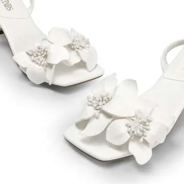 Show more Introducing the DREAM PAIRS Women's Flower Wedding Heels, where sophistication meets comfort in an exquisite design. Perfect for special occasions and casual outings alike, these white PU square toe slingback sandals feature delicate flower appliqués on the instep strap, effortlessly infusing femininity and elegance into your footwear collection. The kitten heel, standing at a graceful 2.56 inches, not only elevates your silhouette but also maintains comfort, allowing you to enjoy every moment without sacrificing style. Experience the perfect balance of chicness and practicality with every step you take.