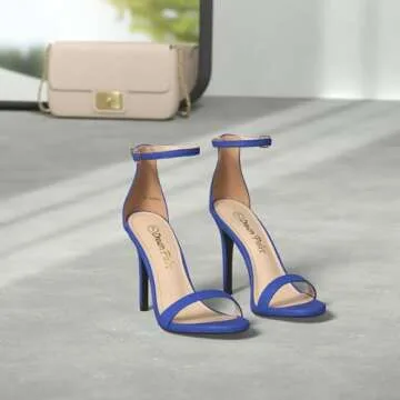 DREAM PAIRS Women's High Heels Flower Ankle Strap Stilettos Round Open Toe Dressy Sexy Sandals,Size 6.5,Royal/Blue,Karrie