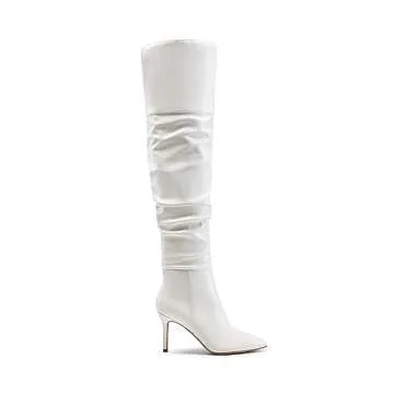 Available in a stunning white PU finish, these boots are designed to make a statement, whether you're pairing them with a flirty dress for a night out or dressing them down with jeans for a casual day out. The 3-inch heels help elongate your legs, giving you that beautiful, confident look without sacrificing comfort, as many users rave about their excellent fit and feel.