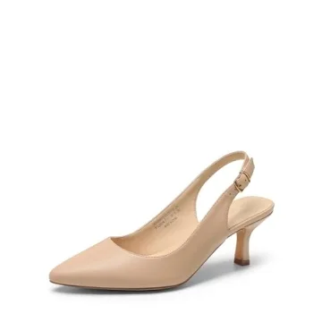 Show more Step into a realm of elegance and comfort with the DREAM PAIRS Women's Kitten Heel Slingback Pointed Closed Toe Low Stiletto Heels. Perfectly designed for various settings, these remarkable pumps feature a sophisticated pointed toe and an open-back silhouette that enhances your natural leg line, making you look chic effortlessly. Made with a plush faux leather upper, these shoes mold to your feet, providing a luxurious feel that ensures comfort throughout the day.