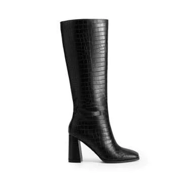 DREAM PAIRS Women's Knee High Boots Square Toe Gogo Boots Chunky Heel Boots with Side Zip Fashion Tall Boots For Women,Size 8.5,BLACK-CROCO,SDKB2407W